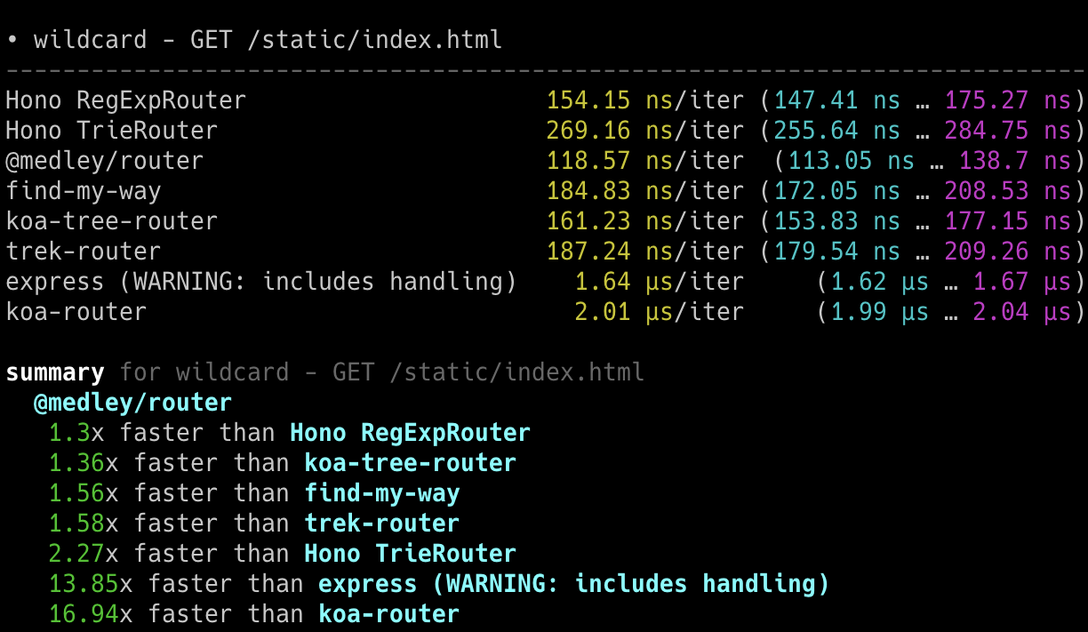 itty-router x 212,598 ops/sec ±3.11% (87 runs sampled)