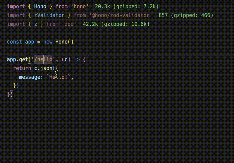 - **轻量** 🪶 - `hono/tiny` 预设小于 14kB。Hono 零依赖,仅使用 Web Standards。